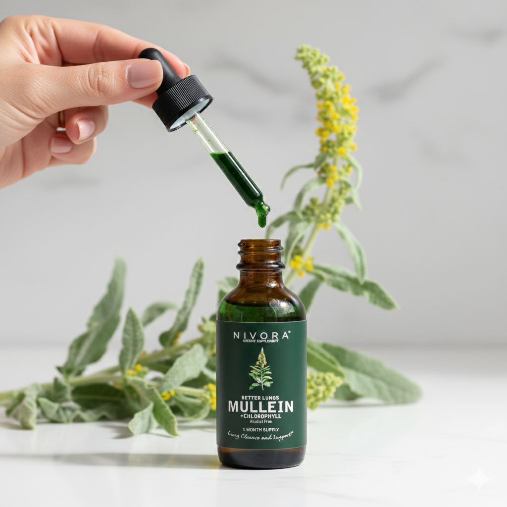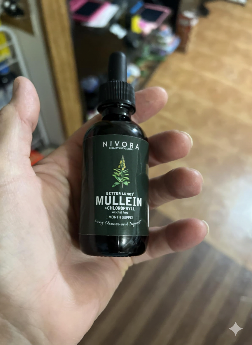 Mullein Lung Detox Drops use 10:1 concentrated mullein extract to dissolve the tar so your body can finally push it out. Chlorophyll grabs the loosened toxins and flushes them from your system.